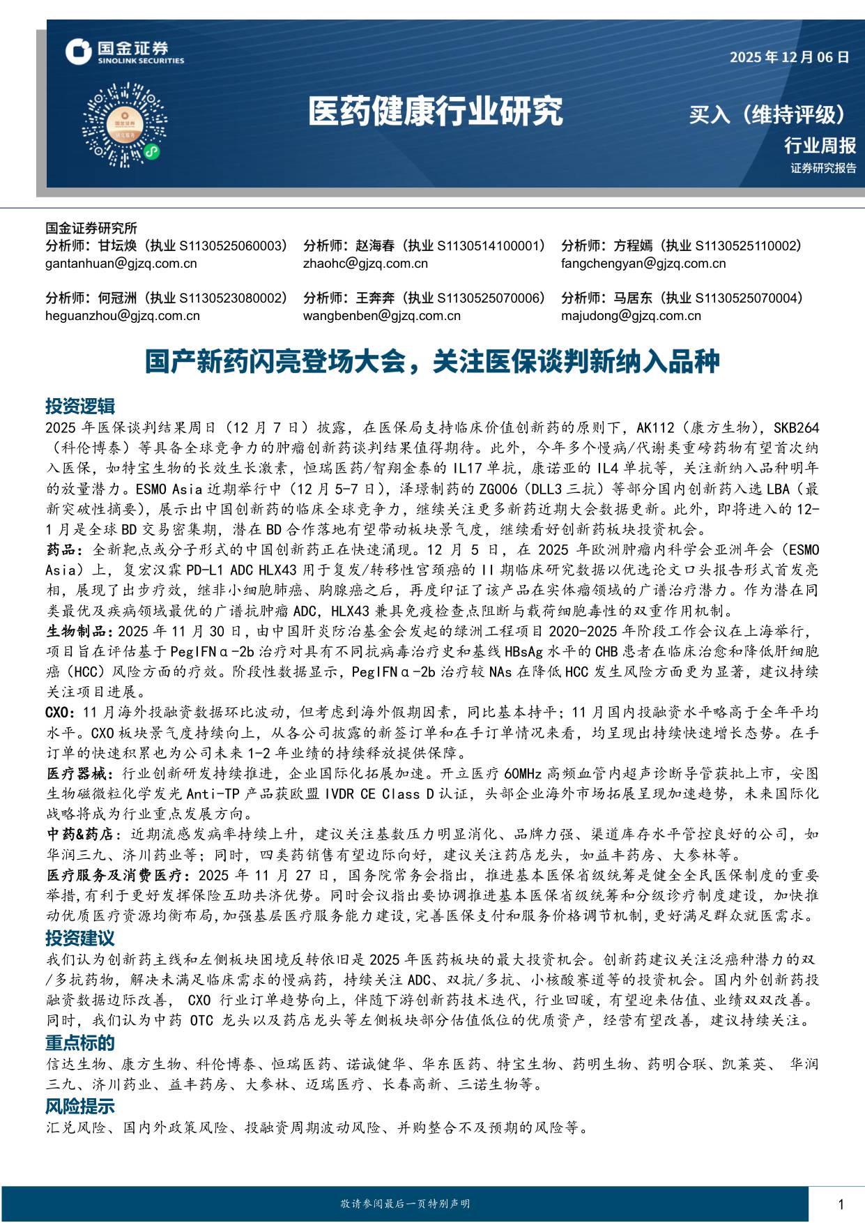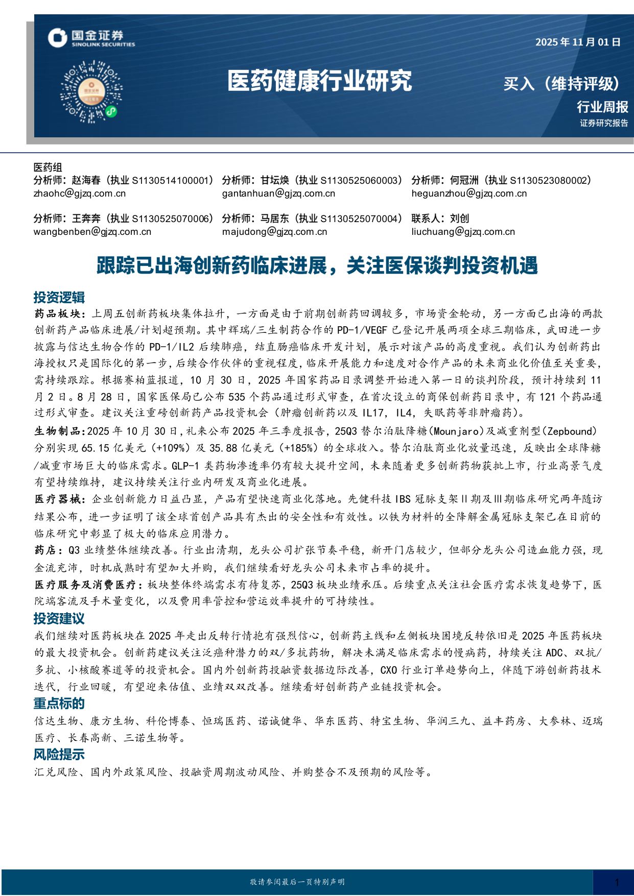 国金证券-医药健康行业研究跟踪已出海创新药临床进展关注医保谈判投资机遇.pdf