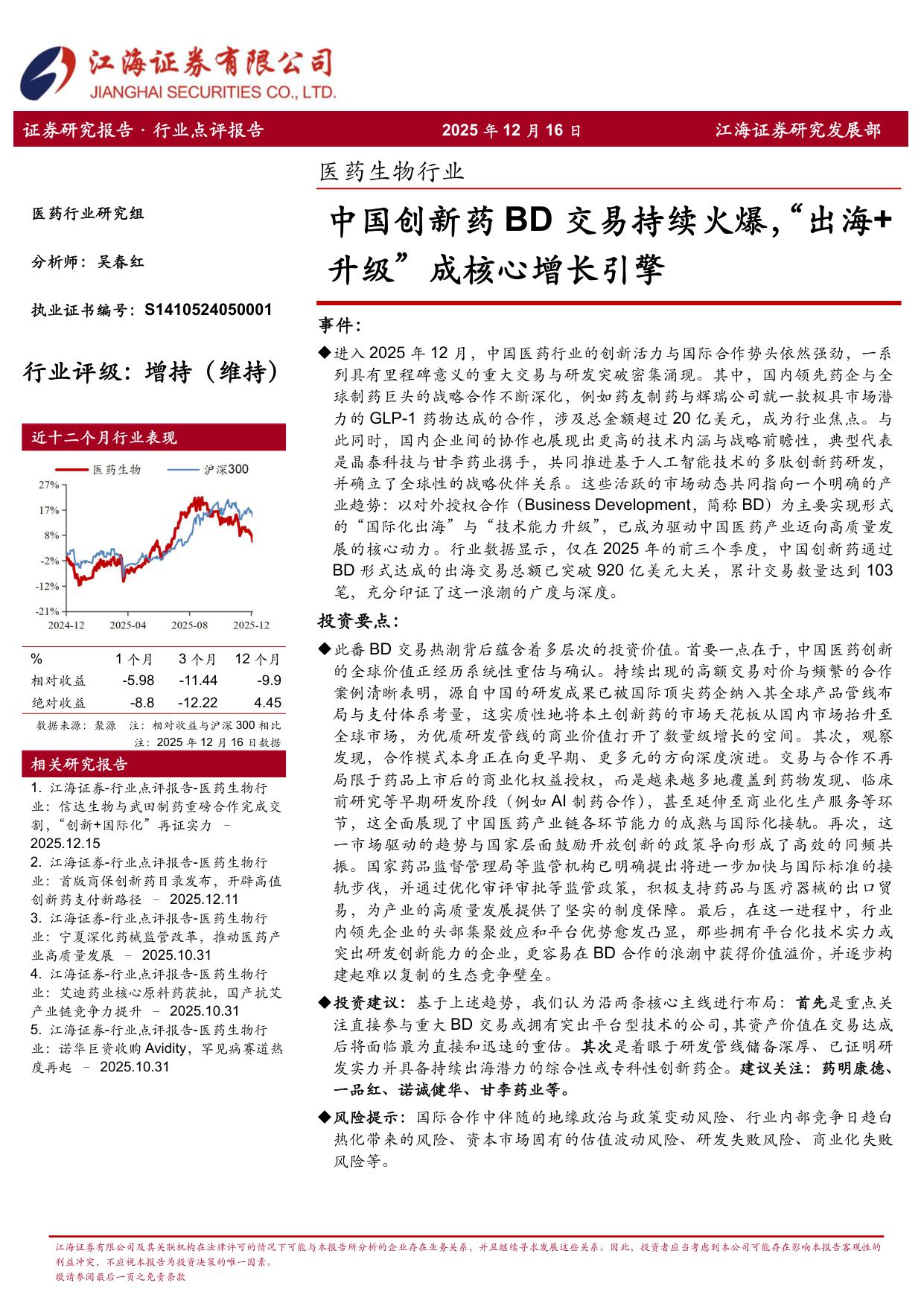 江海证券-医药生物行业中国创新药BD交易持续火爆出海升级成核心增长引擎.pdf