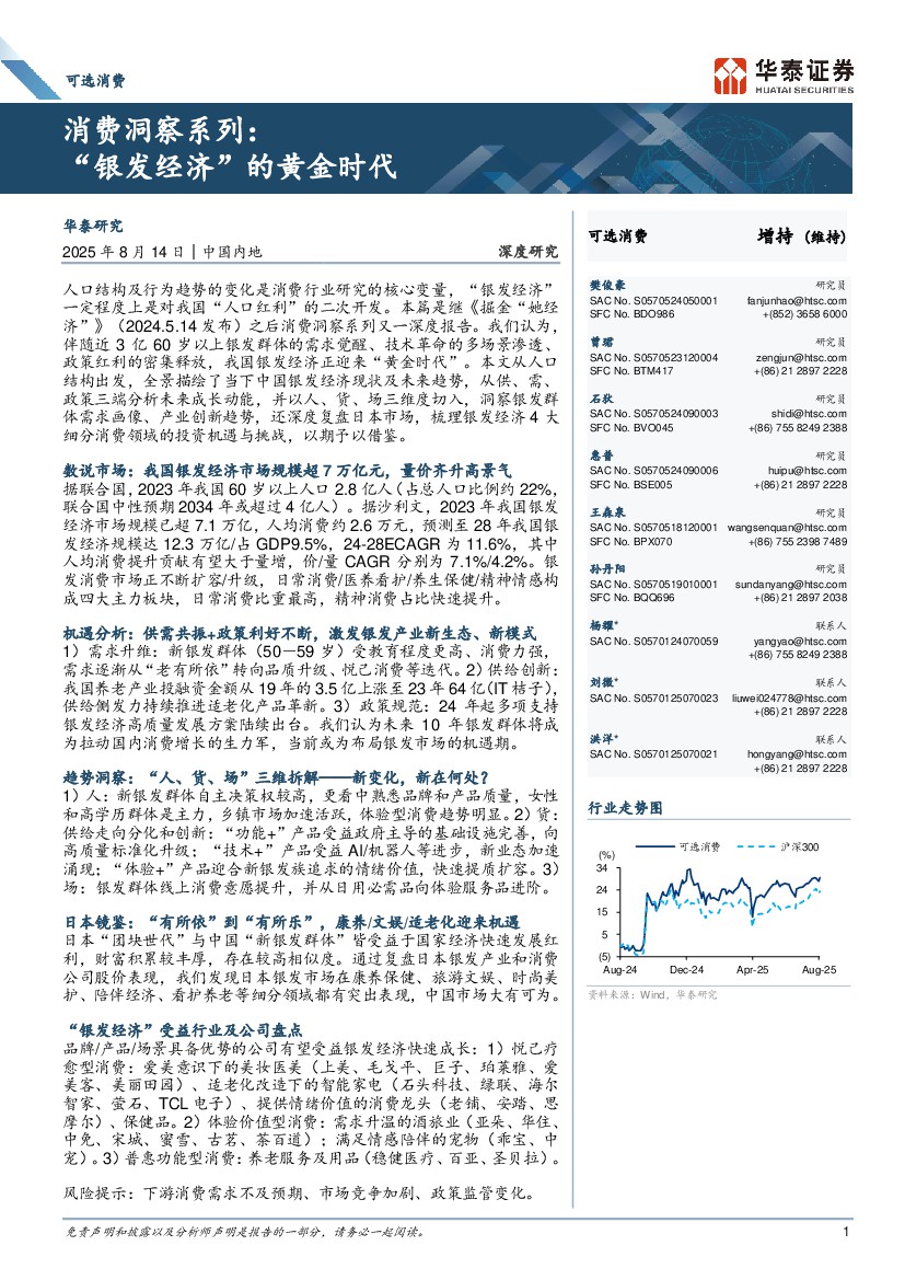 2025可选消费行业消费洞察系列:“银发经济”的黄金时代