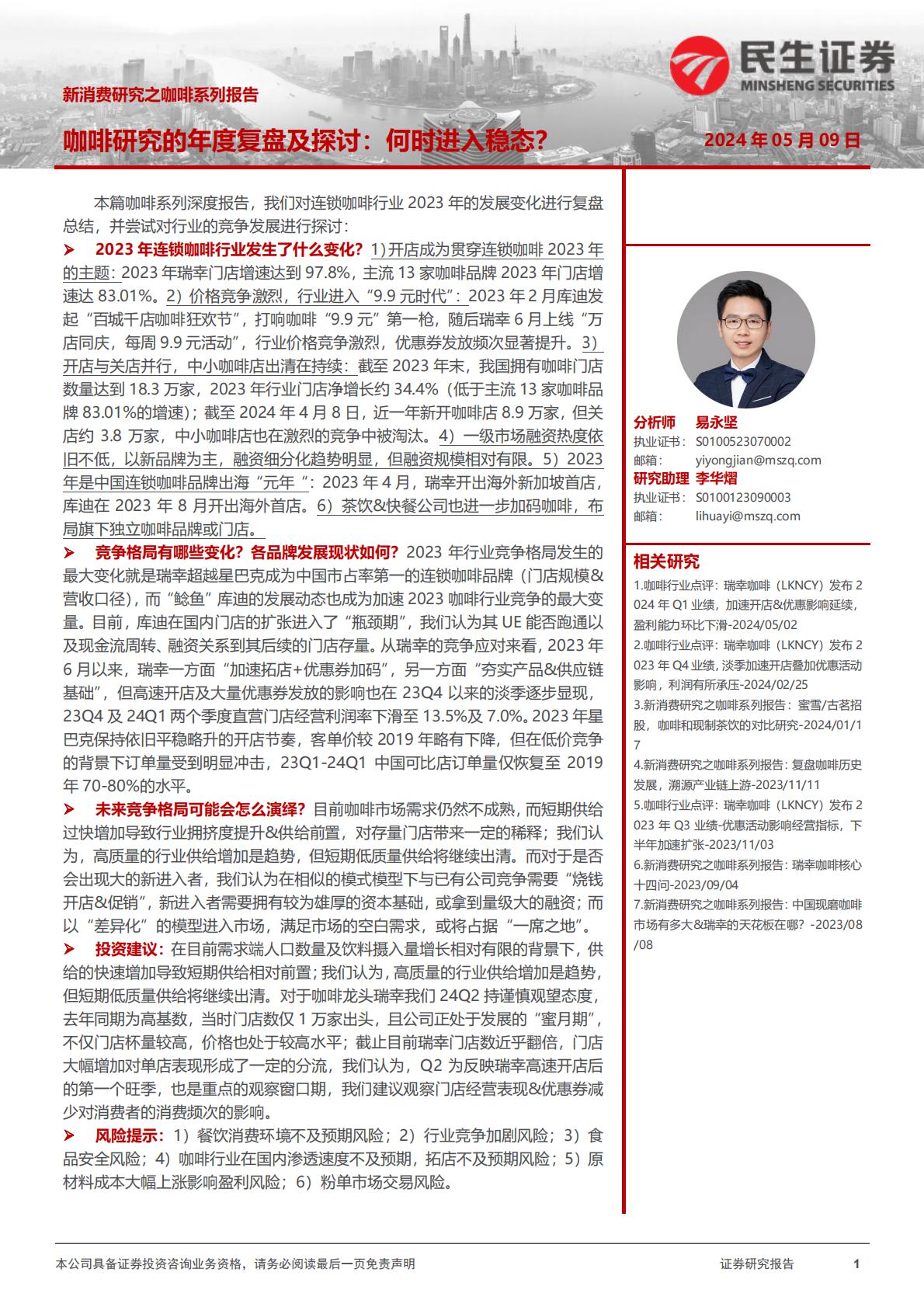 民生证券-新消费研究之咖啡系列报告:咖啡研究的年度复盘及探讨:何时进入稳态?.pdf