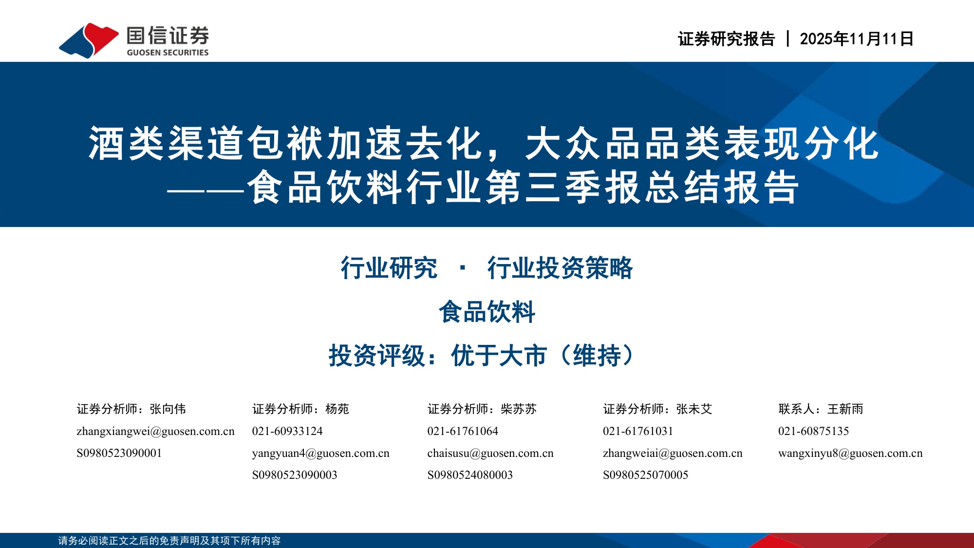 【食品饮料】食品饮料行业第三季报总结报告:酒类渠道包袱加速去化,大众品品类表现分化-20251111-国信证券-43页.pdf